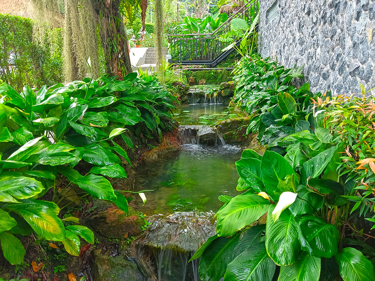 The pools are impressive, with two large pools adjacent to swim-up pool rooms. The grounds are well-kept and blend beautifully with the nature surrounding the resort. From the mountain behind, the natural stream runs through the grounds.
