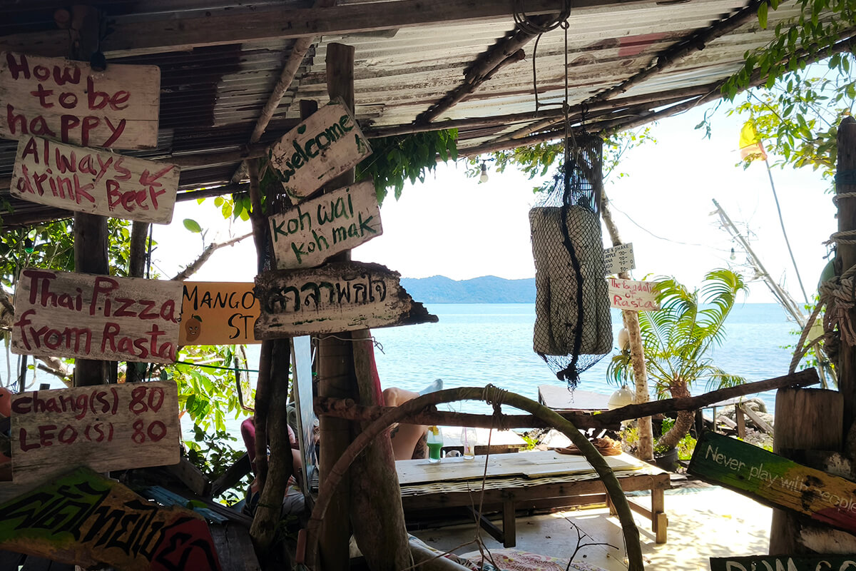 Our favorite funky beach bars where Rasta Chill Bar & Restaurant at Klong Kloi Beach.