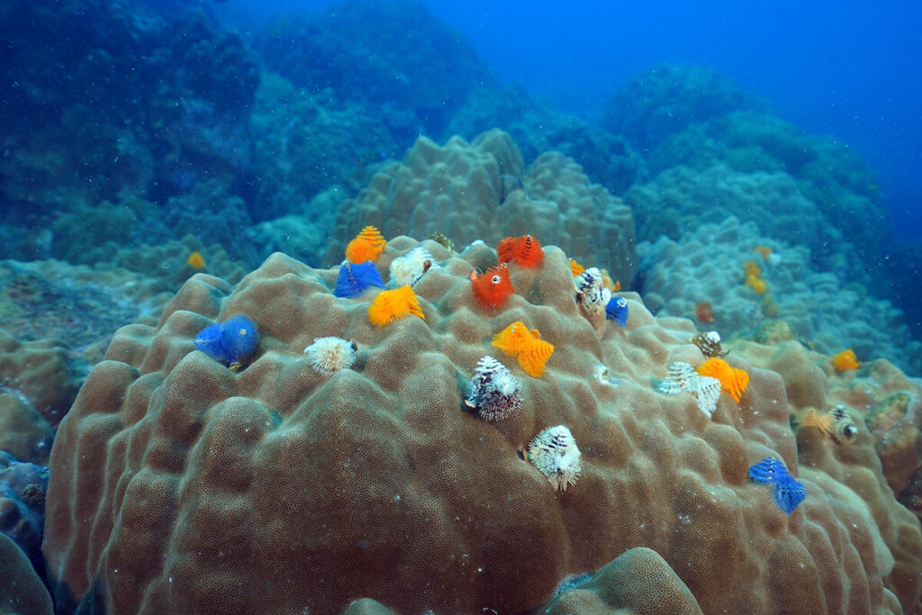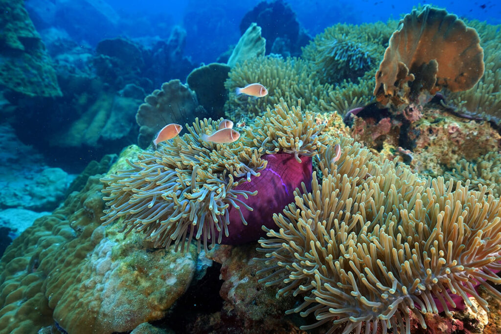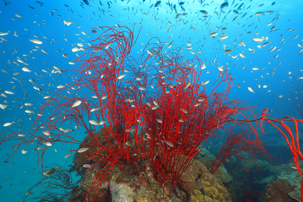 - Coral Reefs: Vibrant coral formations dominate the underwater landscape, providing shelter for countless species. You will see colourful soft and robust corals, sea fans, and anemones swaying with the current.