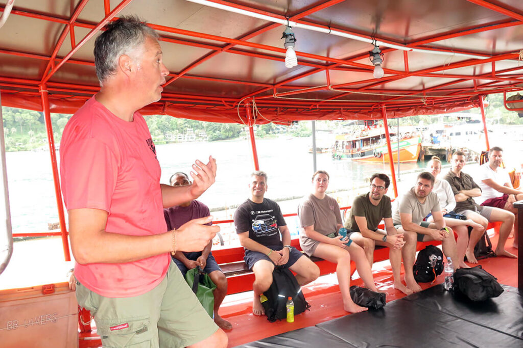 On board: Before any diving or activity is taken, a snorkelling and dive briefing is given on board the boat, providing essential information about the marine environment and safety guidelines.