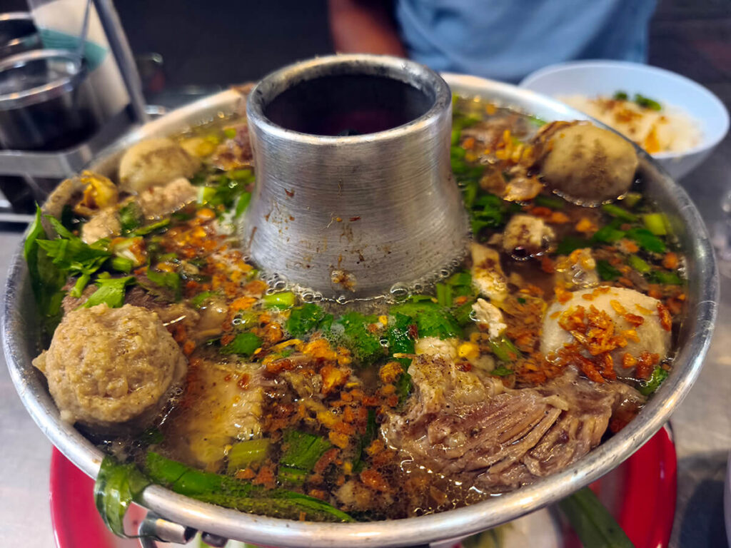The beef is so tender, and the green chili sauce in the condiment pots is sooo tasty (add this to your soup). We ordered the small Beef Hotpot for 250 THB.