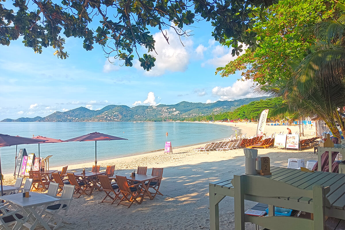 Bophut Beach. This is not a great beach, the sand is rough, and the sea bed has a slime feel to it. It is however a great location for those who are not beach lovers. Beach cafes and clubs, plenty. of excellent restaurants to visit and it’s home to the famous Fisherman village. Has a beach club to visit.