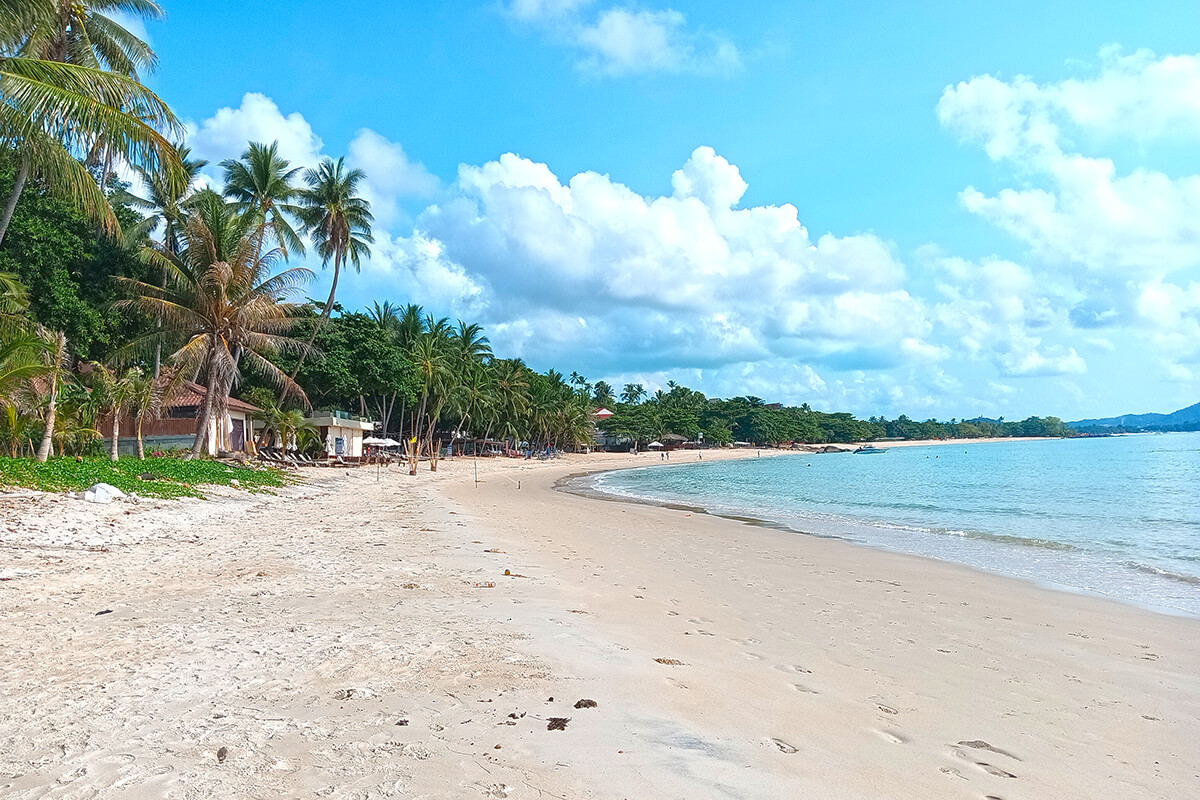 NB. No sunloungers on the beach apart from those located at the resorts. Recommend taking towels. Parking is available in certain areas of the beachside. Approx 20 minutes from Koh Samui Airport.