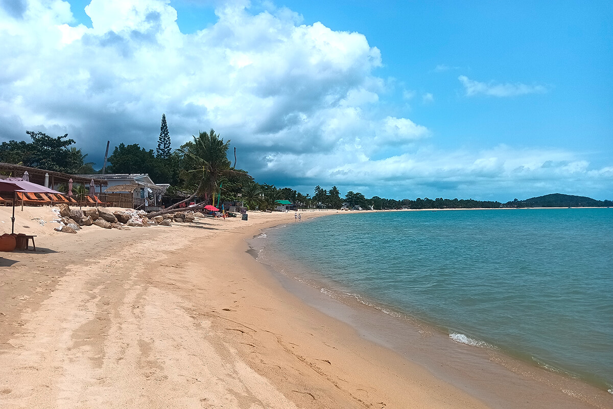 NB. No sunloungers on the beach apart from those located at the resorts. Recommend taking towels. Parking can be difficult, recommend parking at the Wharf and walk through. Approx 15 minutes from Koh Samui Airport.