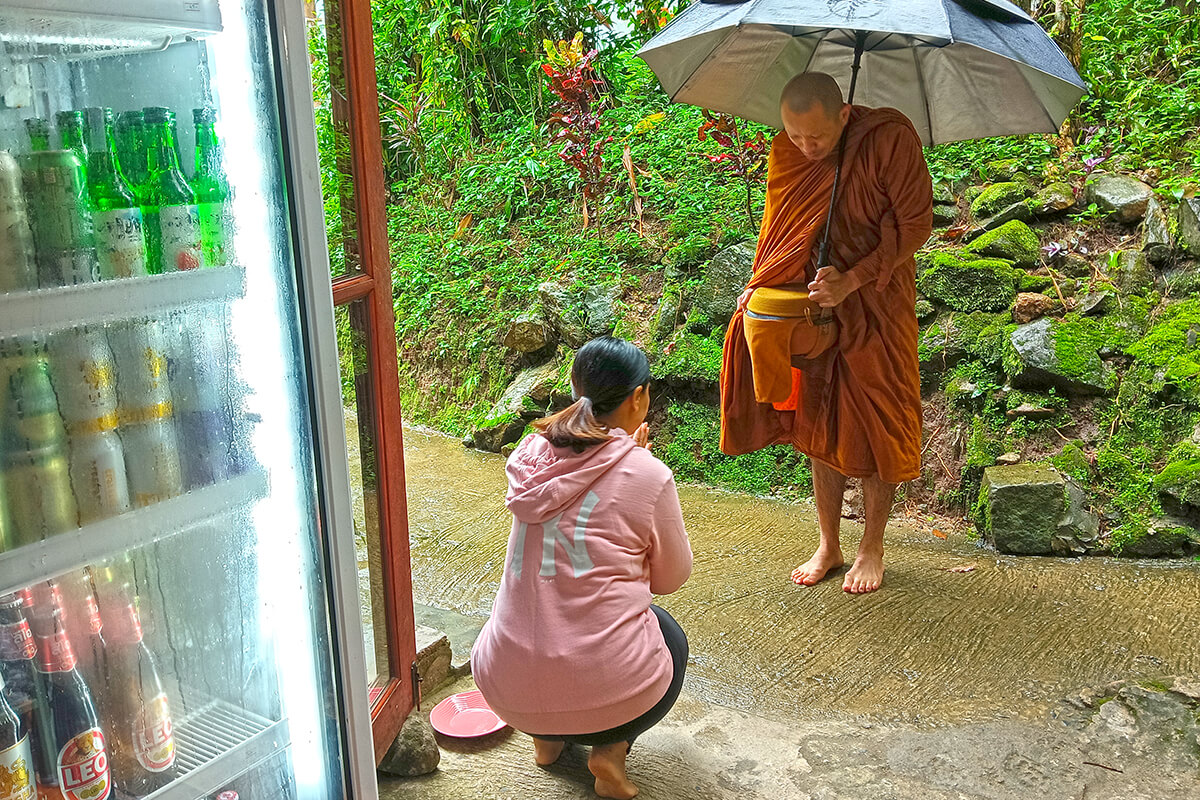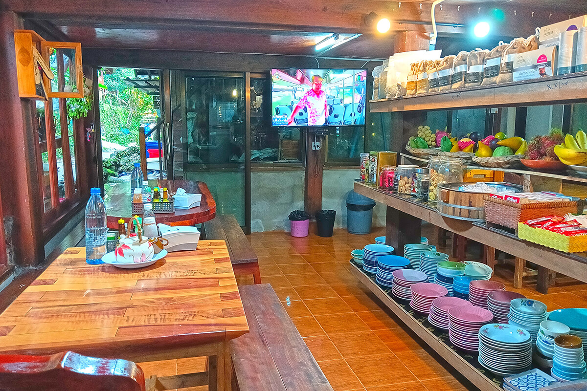 They served breakfast in their small shop/kitchen, which also sold locally produced coffee, tea, and honey. They produced all the breakfast items locally. Every morning, the monk from Mae Kampong Temple receives food donations and blesses the staff and guests.
