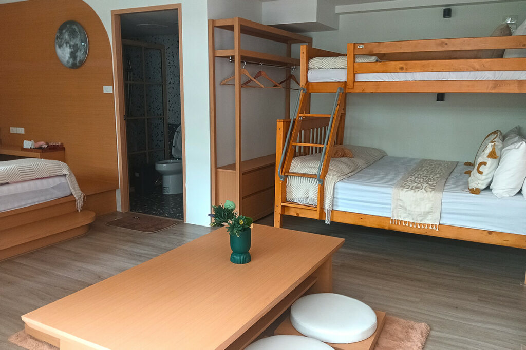 Chaiyapol Homestay Mae Kampong: The room had five beds, all of which were super comfy, bedding of high quality, and a modern design. It consisted of a large balcony area on the waterfall bank.