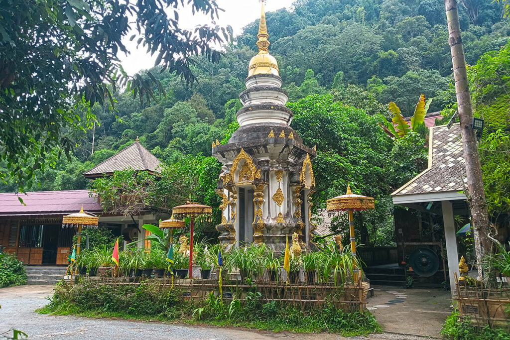 You can find excellent coffee around the village, but there’s a coffee shop with an amazing view of Mae Kampong Village just a short walk before the waterfall. They offer a delicious selection of cakes and pastries.