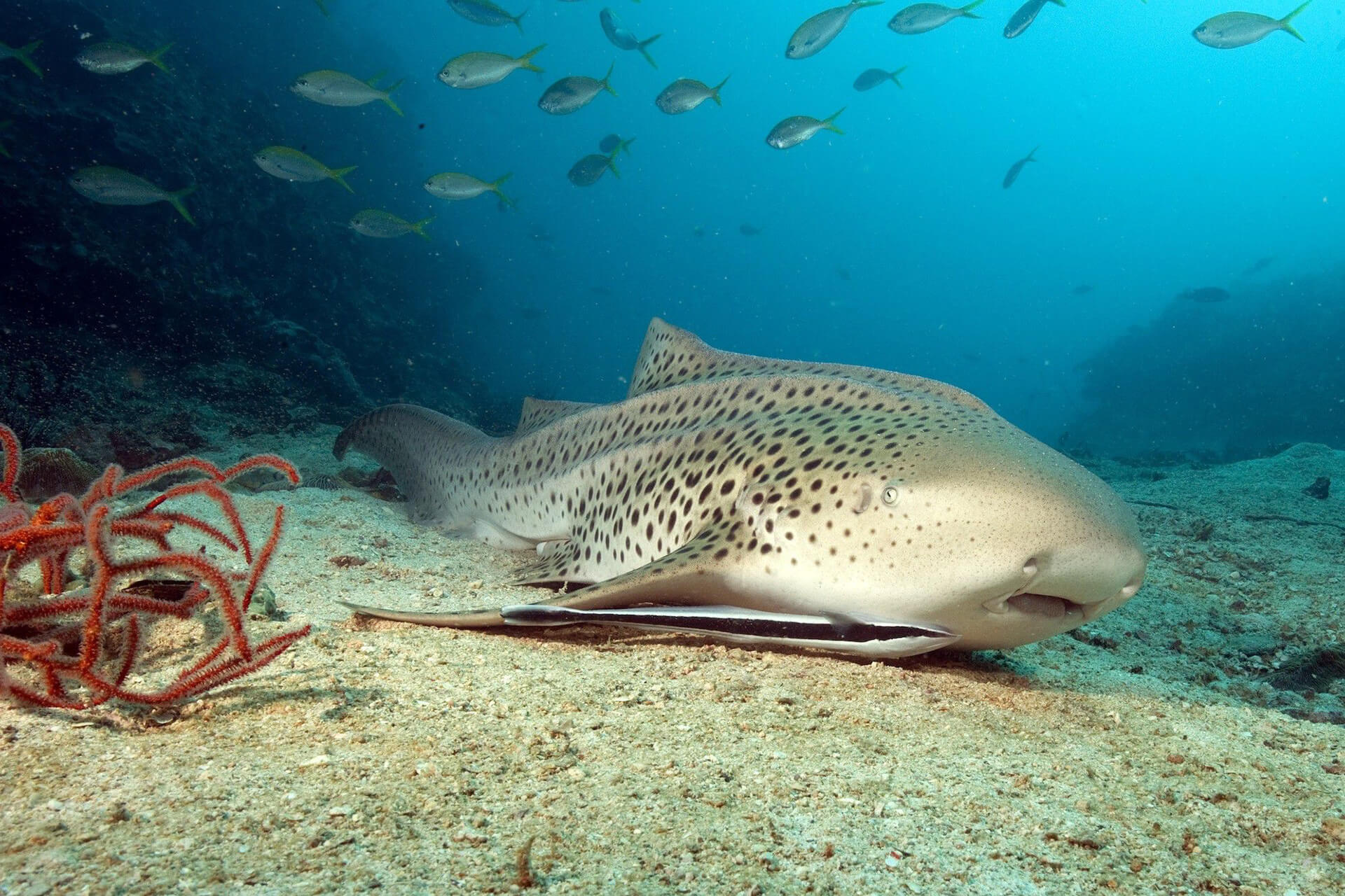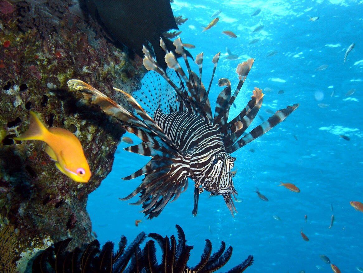 Anemone Reef is a completely submerged, single, craggy rock covered in anemones and colourful soft corals. All kinds of tropical fish can be observed, as well as graceful leopard sharks and beautiful schools of lionfish.