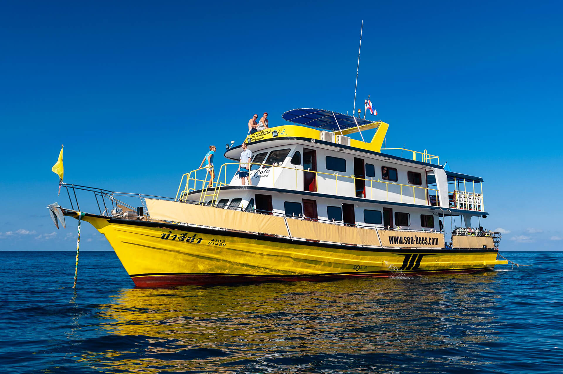 Our freshly rennovated dive boat in Khao Lak the ‘MC Stingray’ is a beautiful and spacious custom built Catamaran made for divers. The Stingray is a platform boat that is reached via our Speedboat in less than 2 hours.
