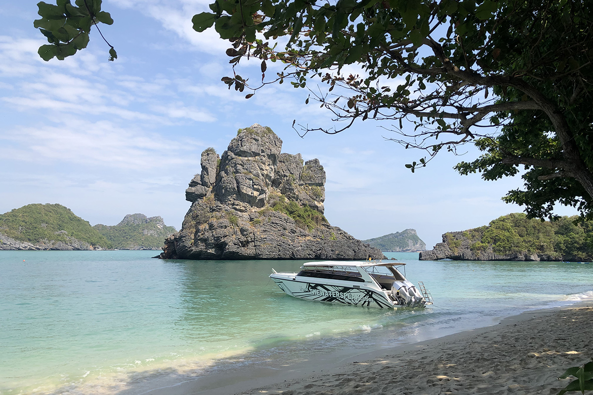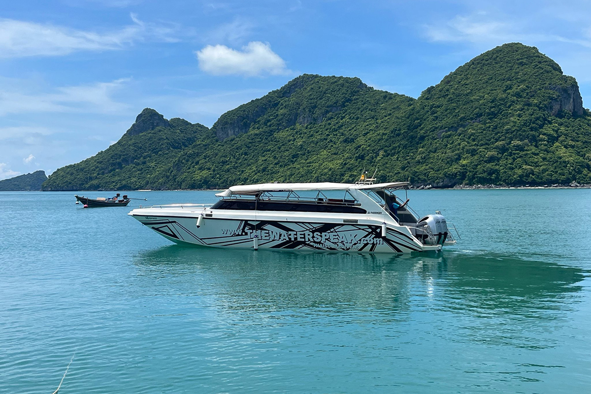 The Angthong Marine Park Private Speedboat Tour twin-engine speedboat is an excellent choice for families, pre-wedding tours, honeymoons, and anniversaries.