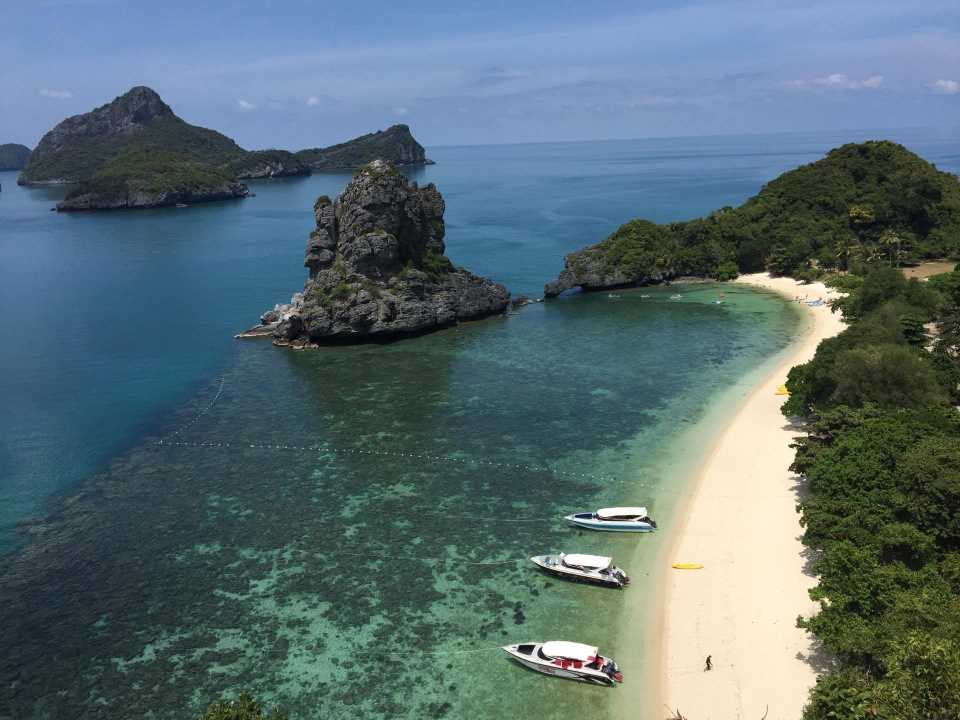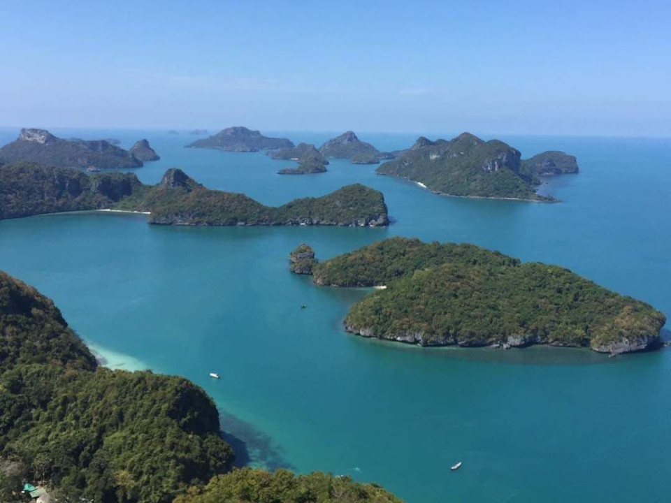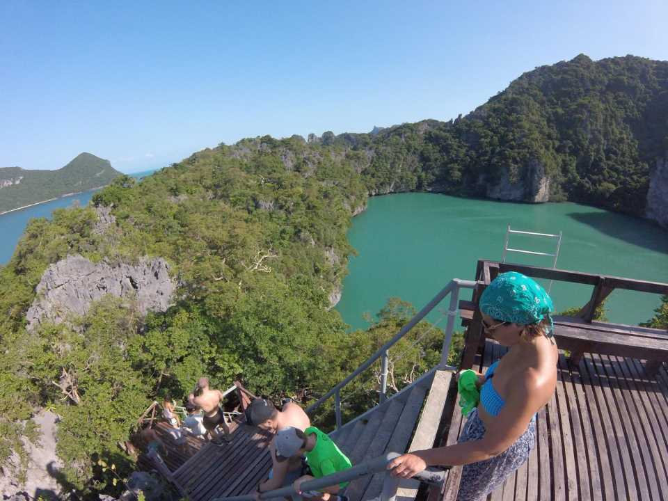 After snorkelling head into the centre of the Angthong Marine Park to visit Emerald Lake an impressive saltwater lake separated from the sea by limestone cliffs. The viewpoint has a spectacular view over Angthong National Marine Park an opportunity to capture amazing holiday photos.
