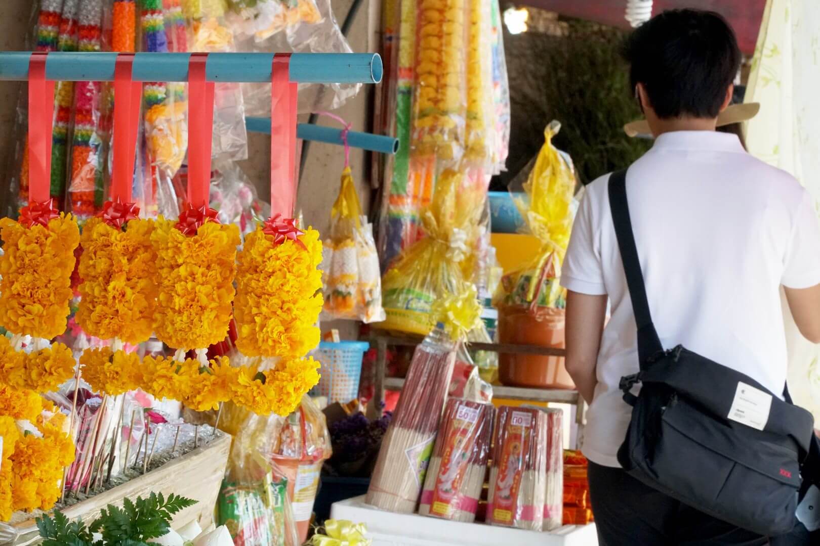 As we hop back on the Vespas, we continue further afield, passing through small neighborhoods and a bit of farmland before arriving at a hilltop temple. Enjoy the views over the city and join in the local tradition of making a wish by offering a jasmine garland.