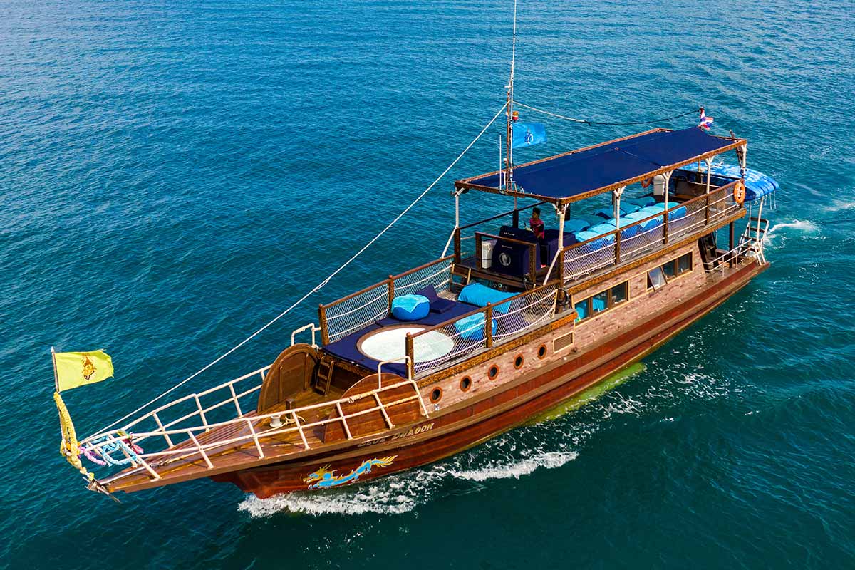 The private charter Blue Yacht is perfect for smaller private charter groups up to 20 persons. For larger private charter groups, the Red Yacht is suitable for groups ranging from 20 to 35 people.