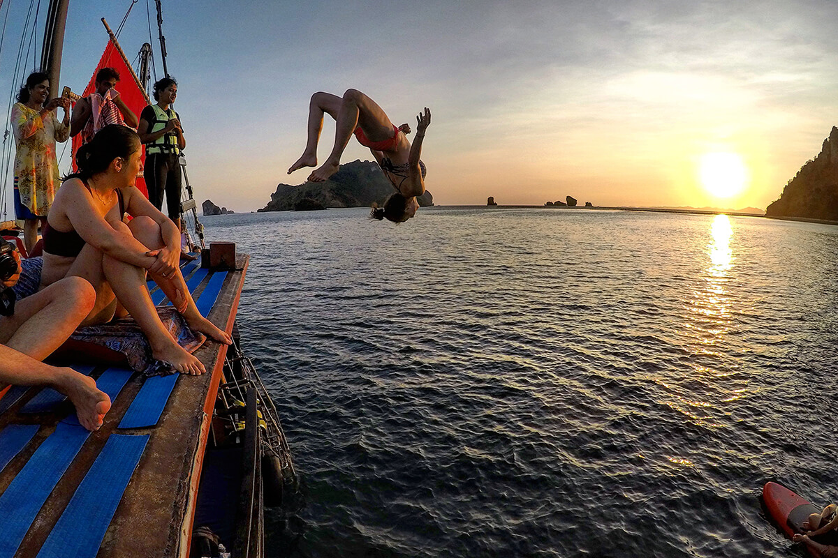 Nb: In high season, getting to the junk boat involves a short ride from the beach in a longtail boat to the junk.