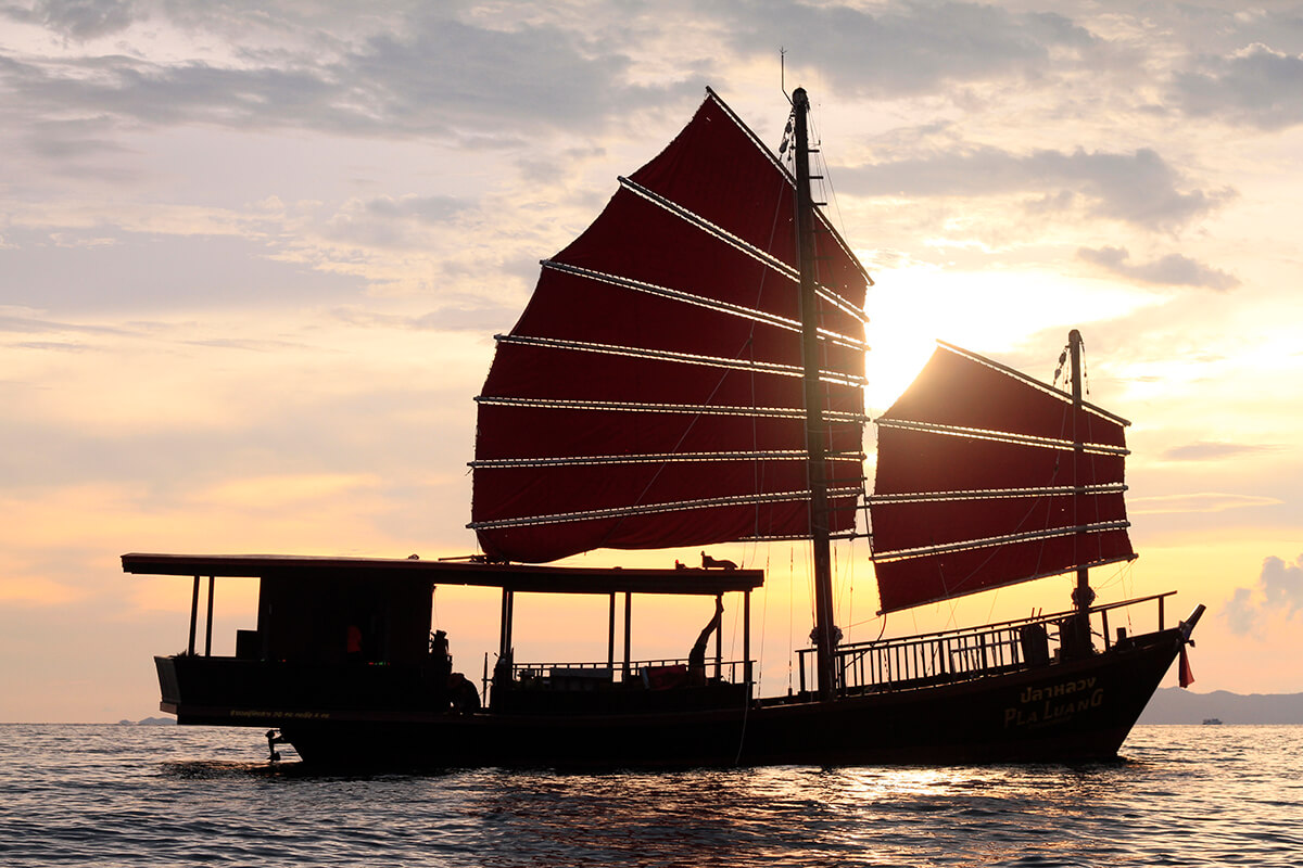 Originally, the junk boat was a trading vessel; over 100 years later, it sailed across Southeast Asia, transporting goods. Its name is “Pla Luang,” which means “the honorable fish,” a name that reflects the respect and reverence held for her in Thailand.
