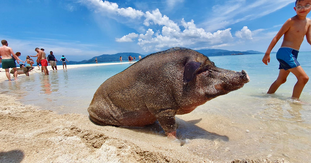 Koh Madsum has recently gained fame for its island pig family, leading to its popular nickname: Pig Island. Koh Tan is also known as Coral Island.