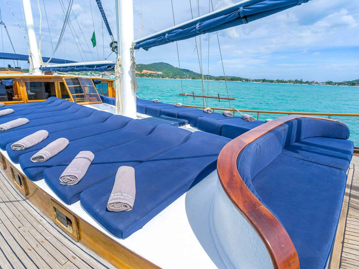 The Luxury Yacht Excursion exploring Koh Samui Islands is the perfect excursion for those simply wanting to relax and enjoy the passing scenery of our tropical islands, Koh Taen, Koh Madsum, and the Five Islands.