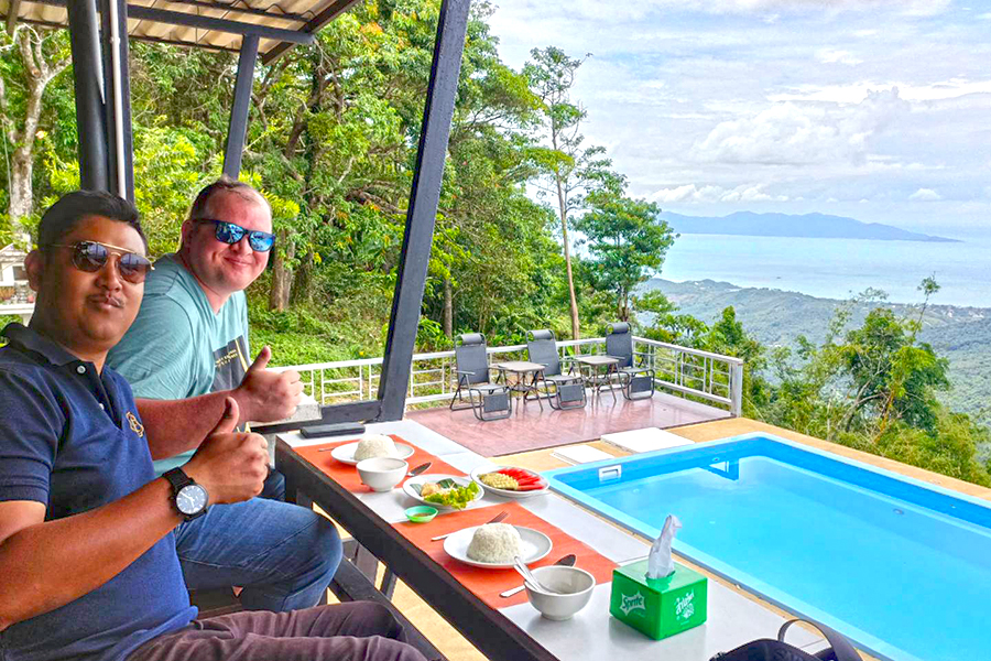 The lunch stop on this Off-Road 4×4 Joint Sightseeing Tour is at a Seaview restaurant located in the hills, offering amazing views over Koh Samui.