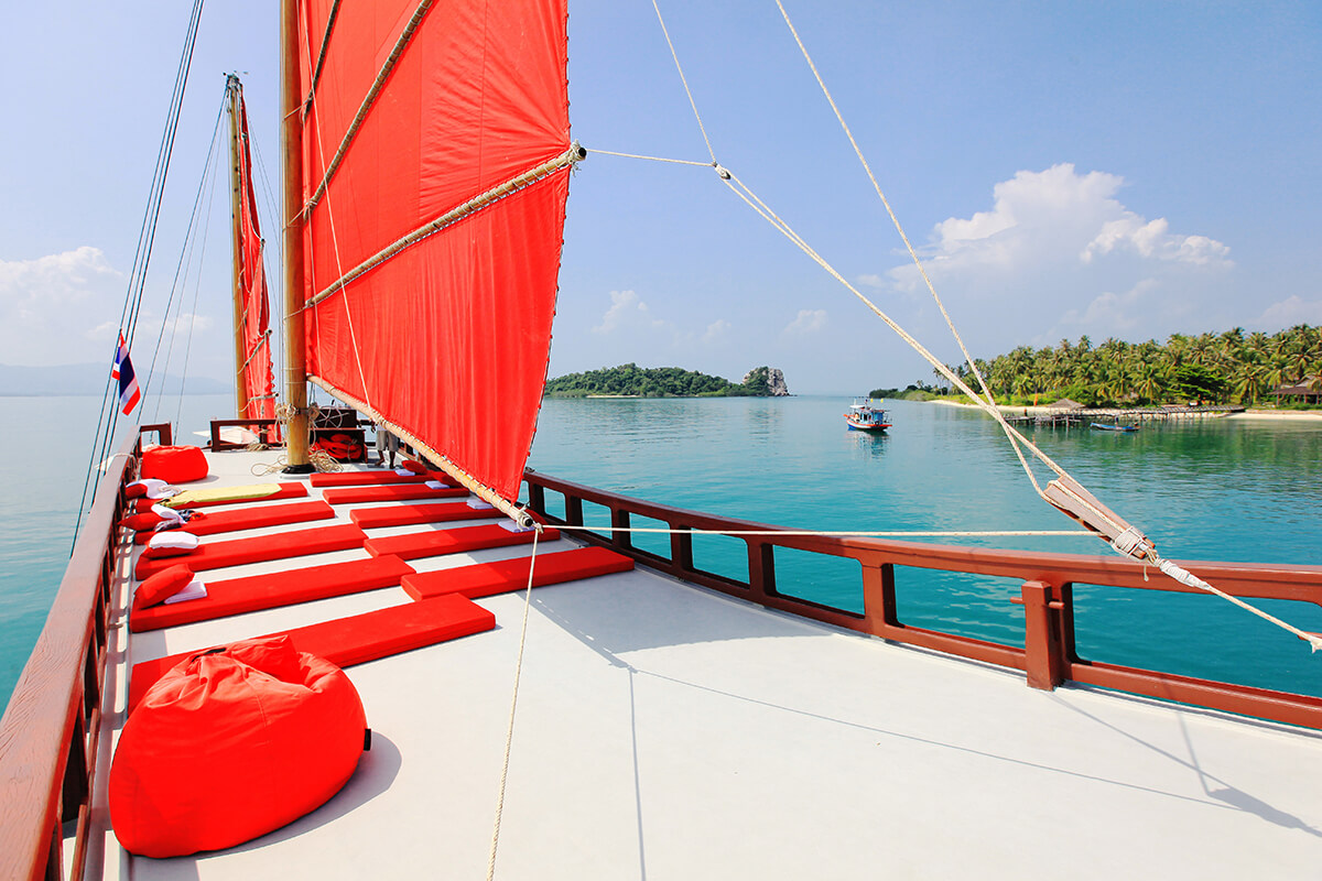 - The private charter junk yacht is very impressive; the characteristics that are impressive are the twin masts and huge traditional Thai-style sails, which are beautiful and very functional.