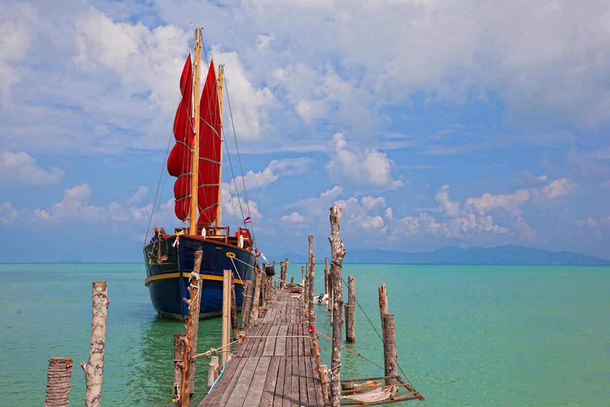 Private Charter Junk Yacht takes you on a splendid journey, sailing with loved ones and friends around Koh Samui, Thailand.