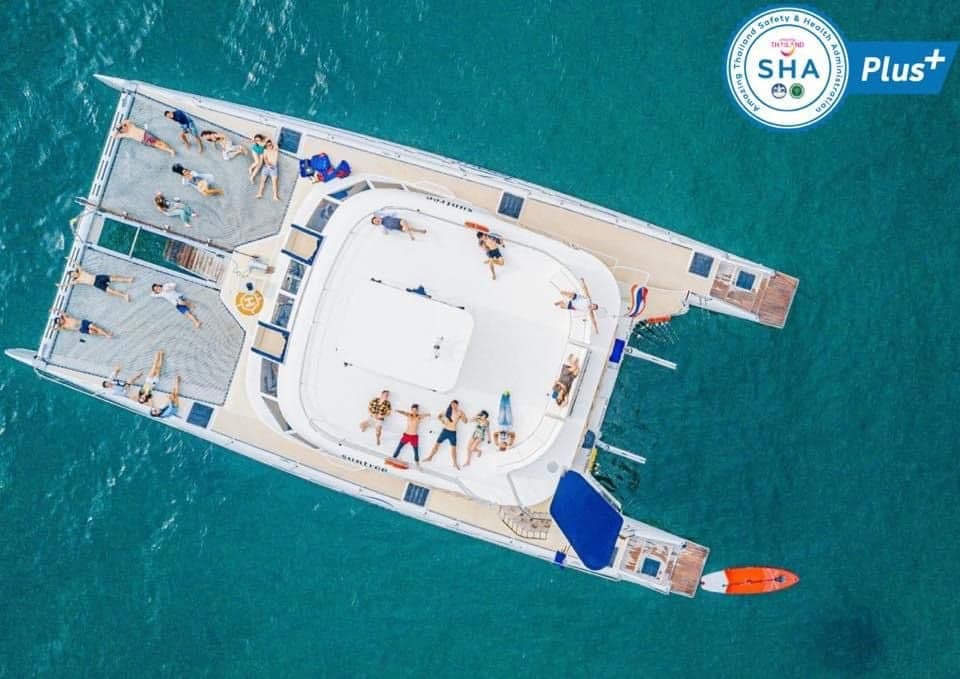 The Luxury Catamaran has a capacity for 60 persons, making it perfect for larger groups. The private charter luxury yacht offers 2 hours, which is perfect timing for sunset, 4 hours to sail around the bays of Koh Samui, 9 hours to visit Angthong National Marine Park, and 8 hours to visit Koh Phangan, Koh Taen, and Pig Island.
