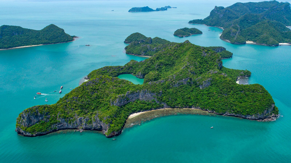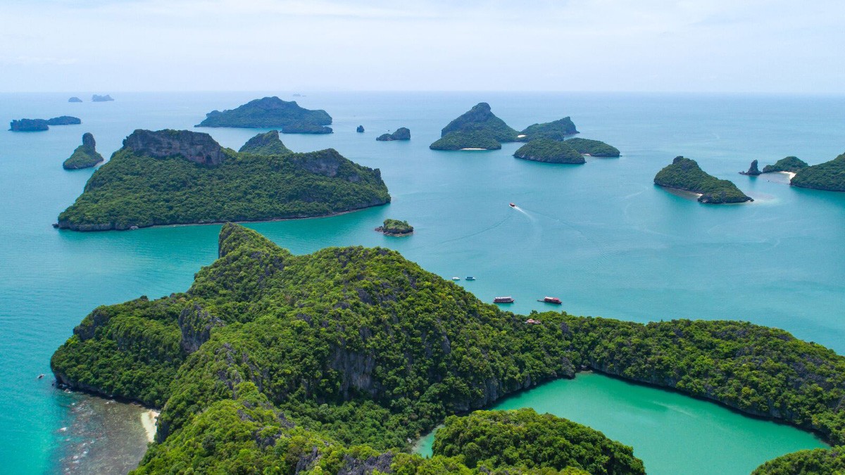 42 islands make up Angthong National Marine Park, which spans almost 250 km2 and includes 50 km2 of protected nature. Angthong Marine Park Islands are undeveloped apart from Koh Phaluai.