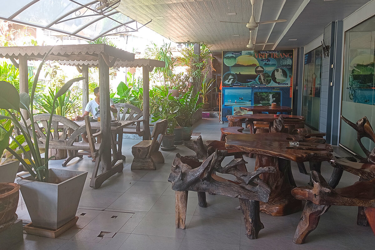 To the front is the best place to relax if you’re looking for a beer in Trang center because there is no bar.