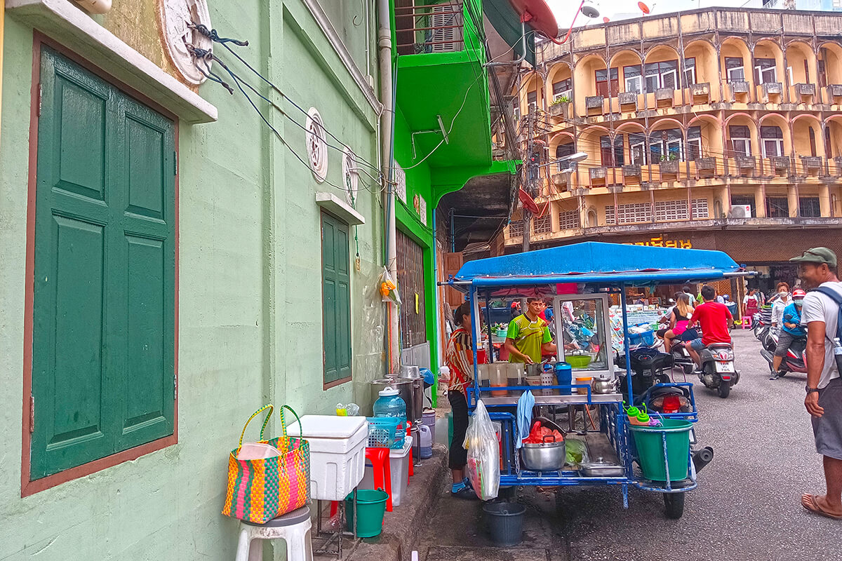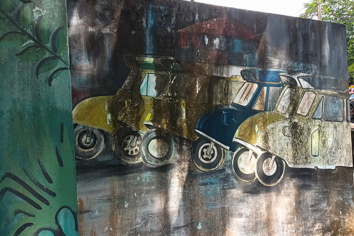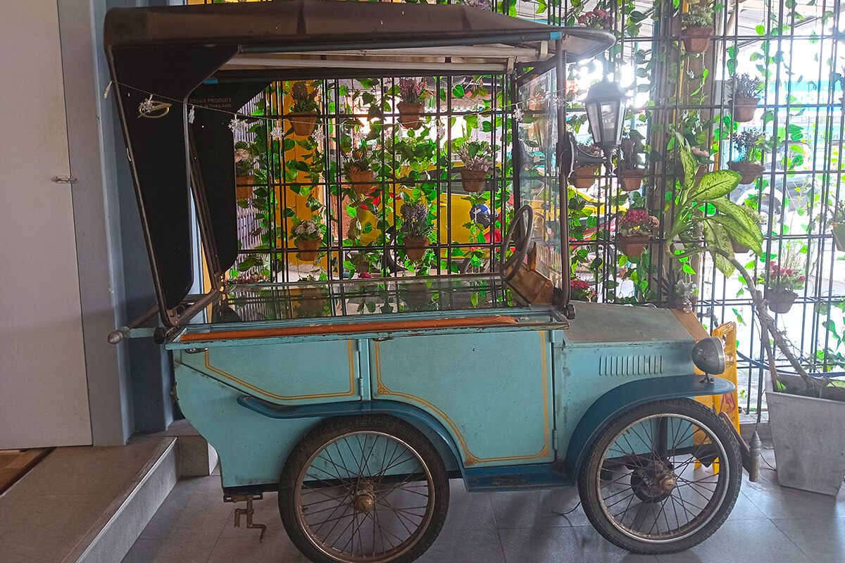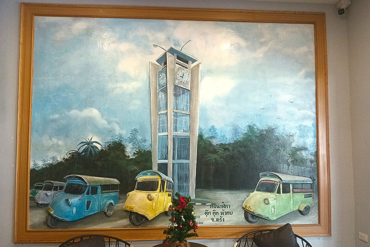 The City itself is easy to walk around or you can take one of its unique Tuk Tuks hourly rate 250 Thb (max 5 people) however 1 hour is sufficient to visit the street art, Dugong Statue, and Town Square. I however recommend walking around and finding street restaurants, experiencing the Old Town Trang and street markets.