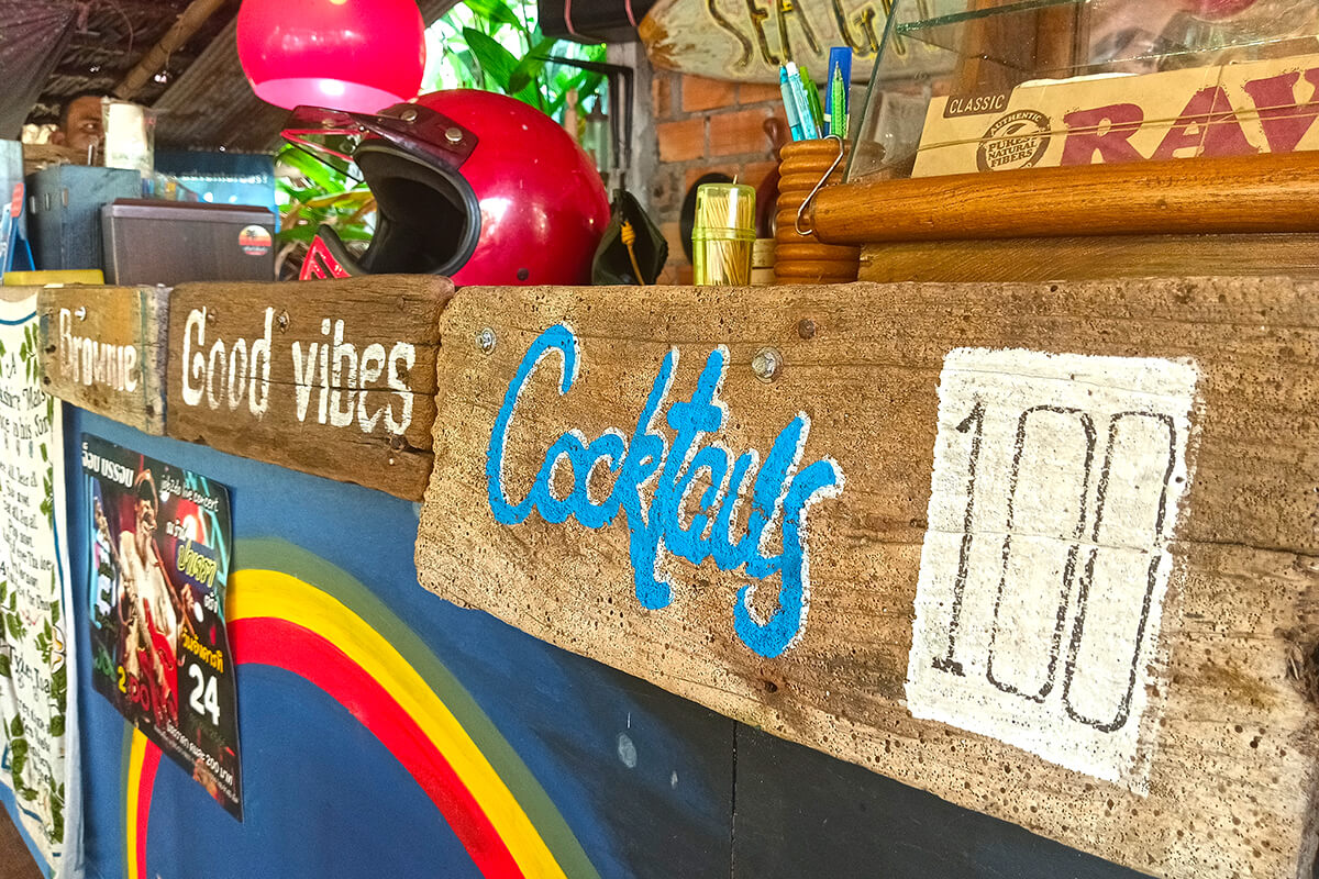 The owner moved from Koh Lanta during covid and opened this super cool bar with his wife. The music is excellent, he offers a full western style bar and other items 🙂 They also sell food from 50 THB.