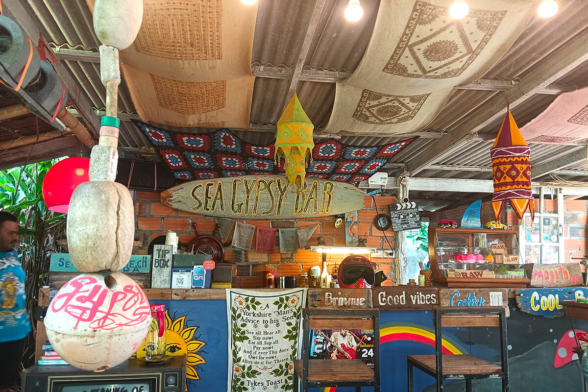 Across the Train Track 10 minutes walk from the center is this funky cool bar hidden away. Sea Gypsy Bar.
