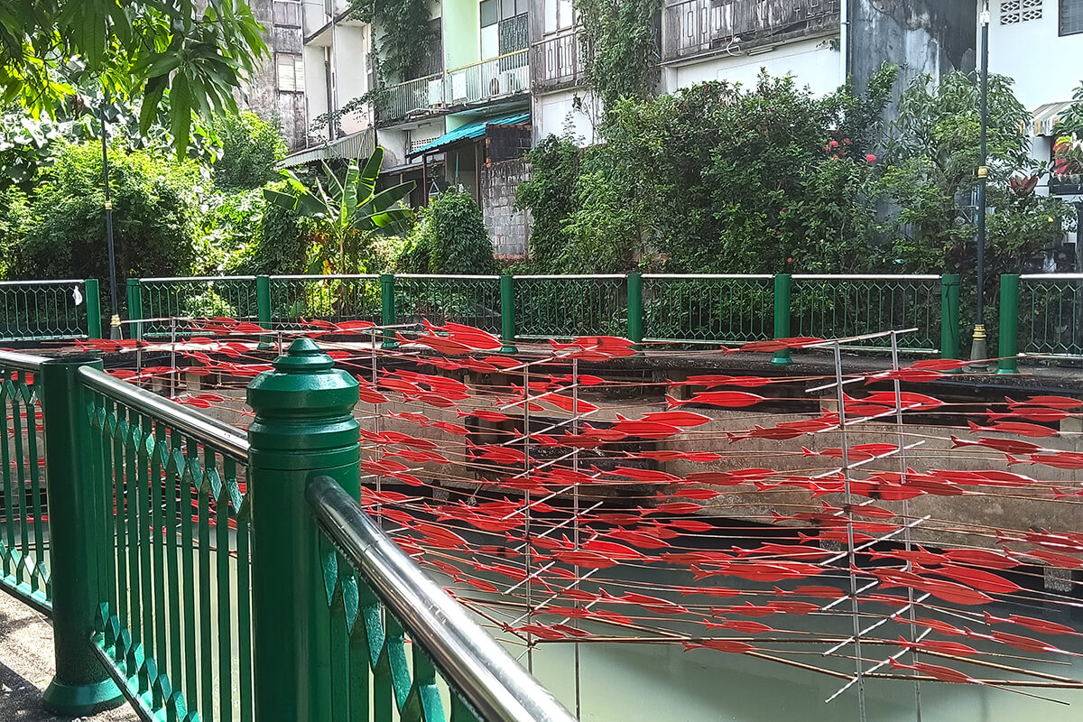 As you walk around Trang it’s clear to see the Chinese influence with the red lanterns, and temples. Down on the Klong walkway, you can find the Temple ground and next a Buddhist Spirit house. This is unique in itself that two religious beliefs sit hand in hand.