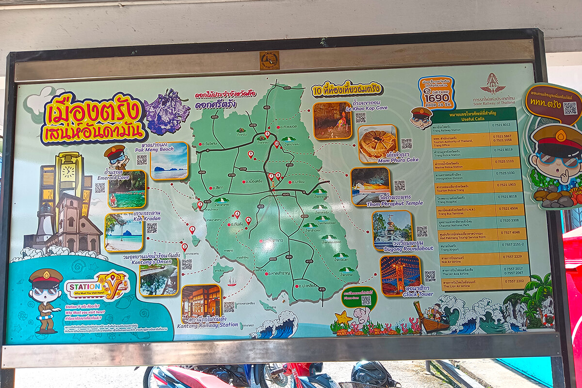 Trang station is the end of the track or starts from Trang to Bangkok, vice versa. It’s a convenient and cheap way to travel. It is the travel hub for island hopping to the Trang Islands. Trang is the most colourful train station in Thailand.