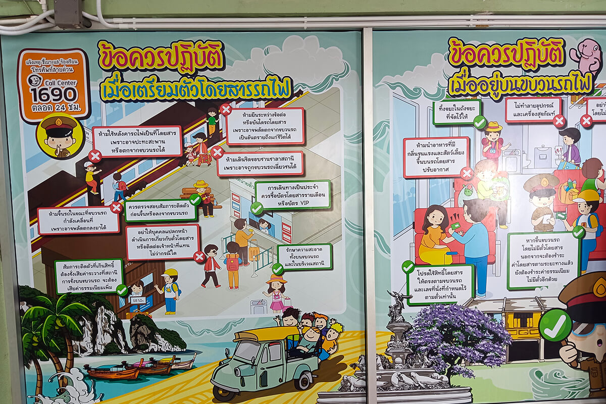 During the journey, food sellers will come onto the train, selling a variety of Thai food, drinks and snacks, so you do not need to stock up with food for the long journey.